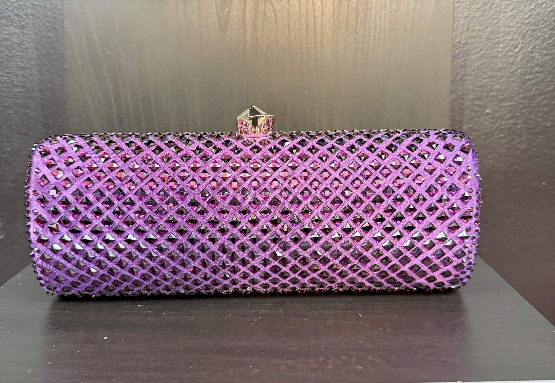 Experience elegance with our stunning Purple Crystal Clutch. With a sleek cylinder shape and sparkling Swartz crystals, it's sure to catch everyone's attention. The gold clasp and detachable straps add extra versatility and convenience to this must-have accessory. Elevate your style game now!
